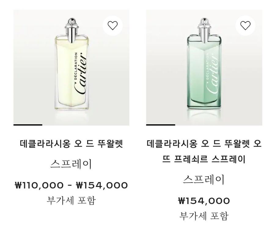 제가 이번에 선택한 데클라라시옹 향수는 총 3가지 타입으로 출시가 됩니다. 지속력에 따라서 향수-오드 뚜왈렛-오드 뚜왈렛 오뜨 프레쇠르 스프레이 순으로 나뉘어집니다. 저는 그 중에서 가장 지속력이 긴 퍼퓸으로 택했습니다. 사이즈는 50ML와 100ML 두 타입으로 나오는데 100ML 타입의 향수 병이 예쁘다고해서 큰 사이즈를 택했습니다.