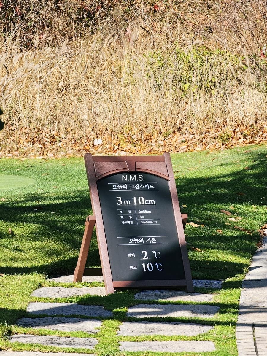 이날 최저 기온은 2도, 최고 기온은 10도로 놀먹사 기준으로는 골프 치기 가장 좋았던 날씨였습니다. 그린스피드도 3.1로 그렇게 빠르게 세팅은 해놓지않았습니다.
