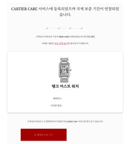 마지막으로 까르띠에 공식 홈페이지에서 정품 등록 및 국제 보증 연장-32년 2월까지 마쳤답니다. 사실 개인적으로 물건을 험하게 쓰는 타입은 아닌지라 이런 보증 프로그램은 잘 이용하지는 못하는 것 같습니다.