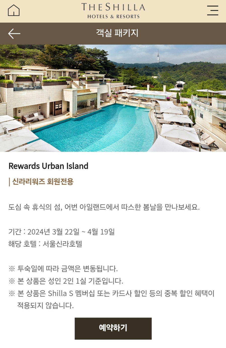 아직까지 어반아일랜드 페이지 내에서 운영 시간은 나오지않았지만 어반아일랜드 패키지 상품이 먼저 오픈이 되었습니다. 지난 주부터 S멤버쉽 회원 대상으로 먼저 오픈을 한 뒤에, 이번주부터는 전체 회원 대상으로 오픈이 된 상황입니다.