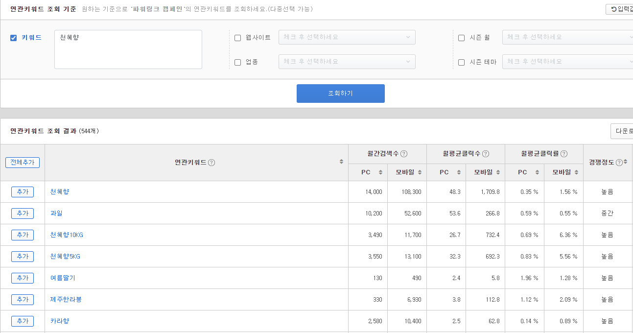 직접 네이버광고센터, 구글애즈에 들어가셔서 도구를 통해 확인하셔도 되고