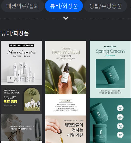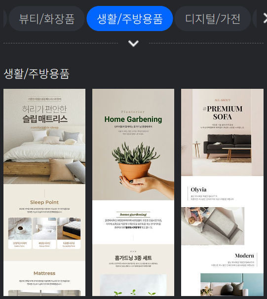 아래보시면 카테고리별로 기본적인 상세페이지 구성이 자동으로 잡혀있습니다!
