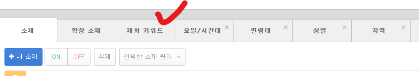 여기서 중요한게 제외키워드입니다