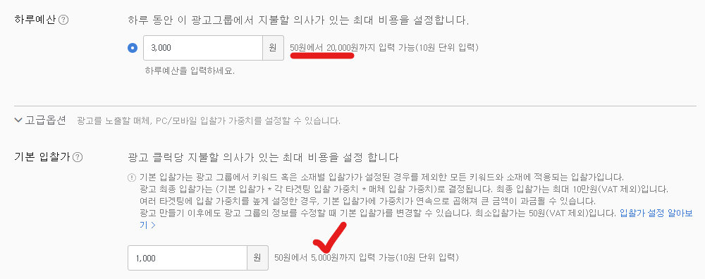 이때 광고주님께서 입찰한 금액을 초과하여 과금되지 않습니다.