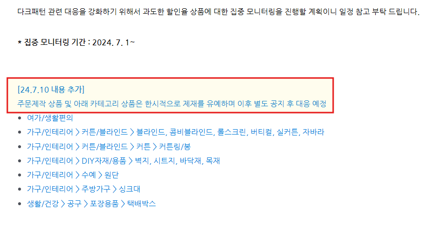 상품 판매중지 or 삭제 경고가 판매자 분들에게 날라오고 있습니다
