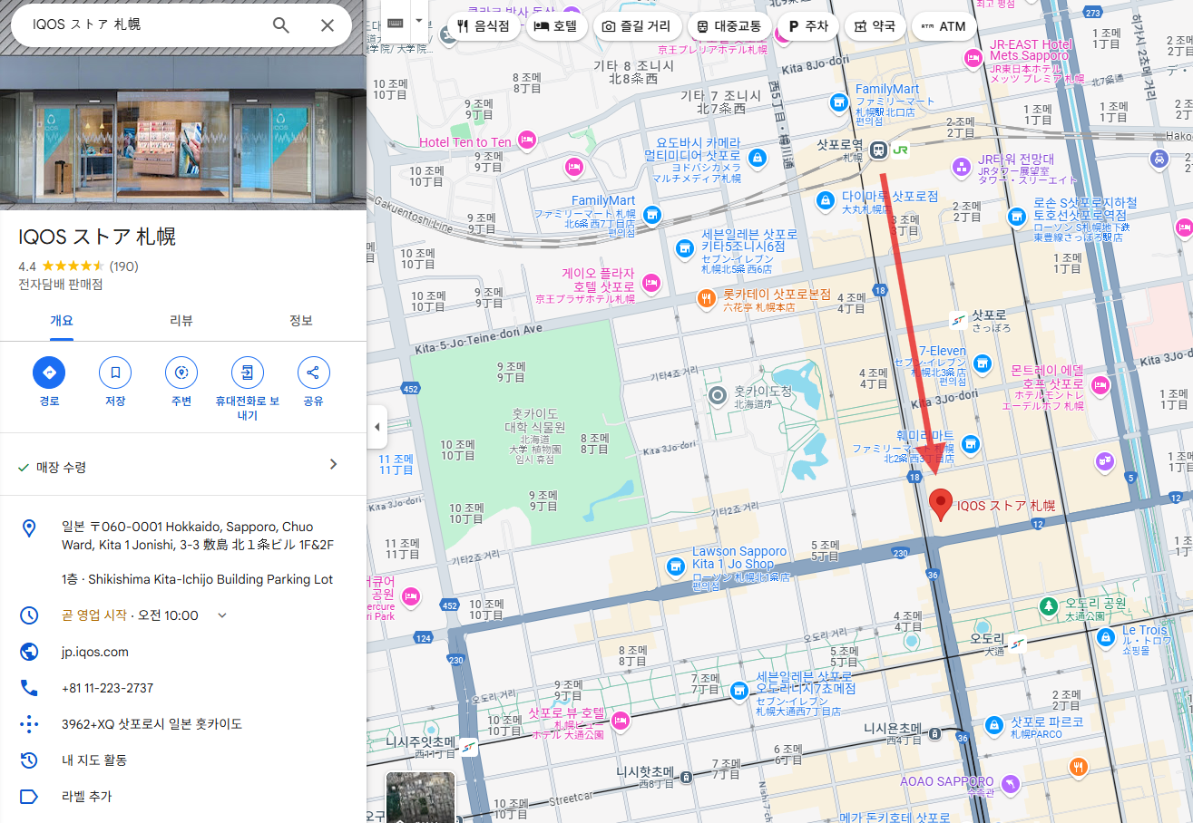 일단 삿포로 아이코스 매장 위치는 여기