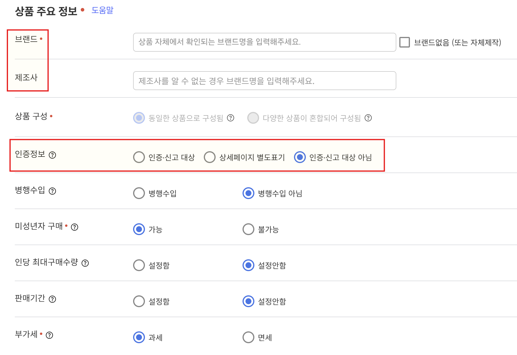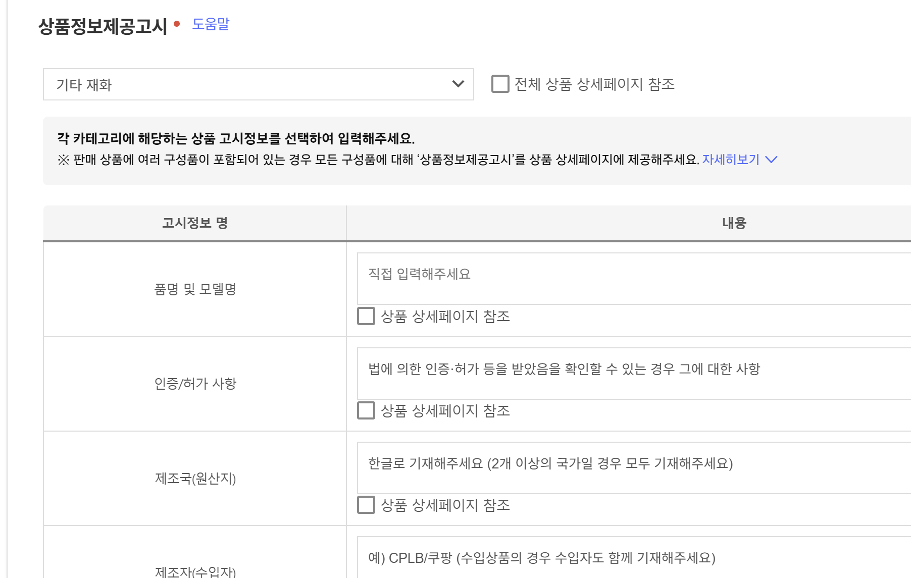 해당 3가지 부분은 등록하시는 상품에 따라서...너무 다르기에