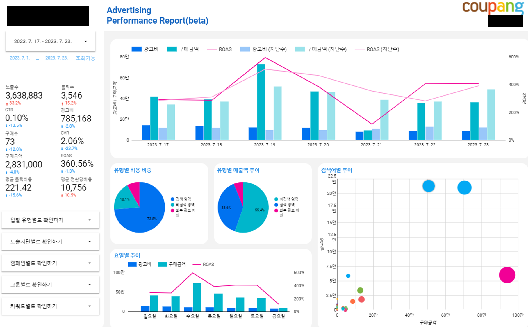 무진장 고민을 해본결과! 쿠팡광고센터내 Raw데이터 즉 보고서를 통해서 보기쉽게 가공하는 방법이 최선인거 같더라구요