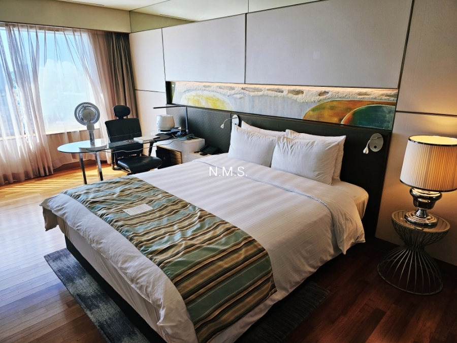 전체적인 룸 구조나 가구 배치는 일반 디럭스 룸과 유사합니다. 베딩은 역시나 약간 힘이 있게 느껴져서 편안하세 숙면할 수 있었습니다. 필로우 서비스도 가능한 것 같은데 별도로 요청하지는 않았습니다.