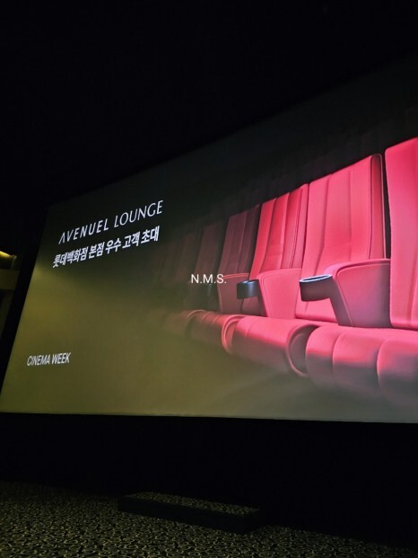 롯데 시네마 로비에 롯데백화점 에비뉴엘 초청회라고 적혀있어서 줄을 섰는데, 리스트에 이름이 없어서 당황했습니다. 알고보니 그 줄은 에비뉴엘 퍼플 초청회였습니다. 다시 샤롯데관 라운지로 안내받아서 가보니 1등으로 도착해서 가장 좋은 자리인 세번째 열, C열 중앙 자리로 부탁드렸습니다.