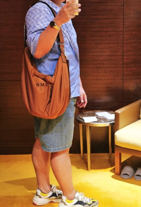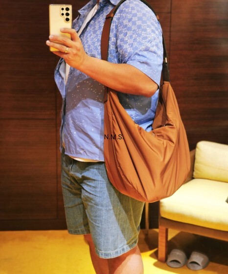 브라운 컬러가 블루나 네이비 톤과 매칭하면 훨씬 고급스러운 느낌이 들어서 블루 컬러의 의류와 함께 코디를 해보았습니다. 워낙 빅백인데 저또한 빅맨인지라, 그렇게 커보이지않는 것은 안비밀.