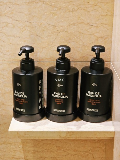 어메니티는 역시 환경 문제로 다회용으로 되어있고, 프레데릭 말의 '오 드 매그놀리아'입니다. 그리고 국내 호텔과 달리 칫솔, 치약까지도 모두 완벽히 준비되어있는 점이 좋았습니다.